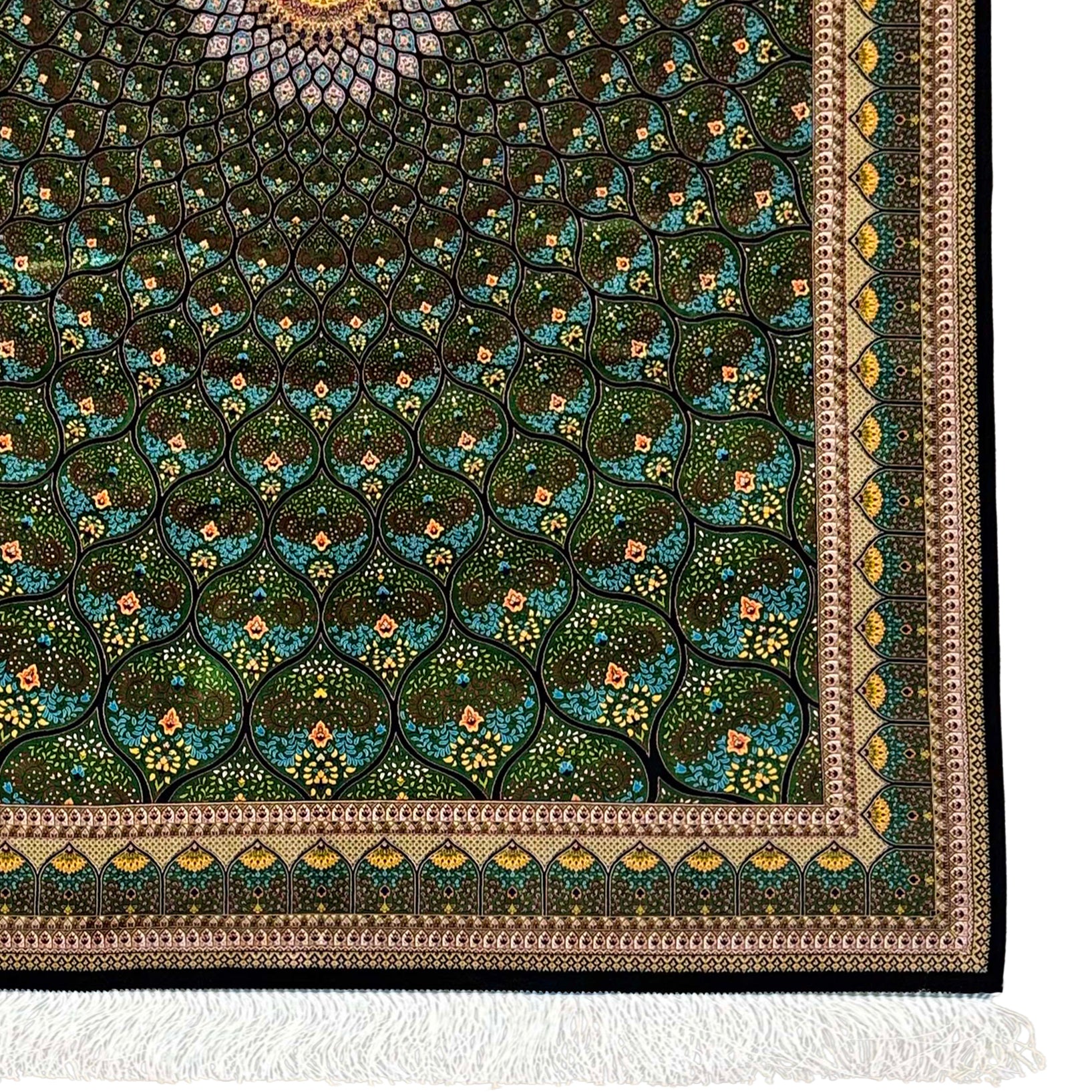 This beautiful rug is made made of high quality modal material. Inspired by the rich tradition of silk carpets, this masterfully crafted work of art combines the timeless beauty of a classic design with state-of-the-art manufacturing technology. Modal, is a luxurious synthetic fiber known for its softness, durability and natural shine. This innovative fiber gives the carpet a silky texture that is not only comfortable underfoot but also ensures premium aesthetics.